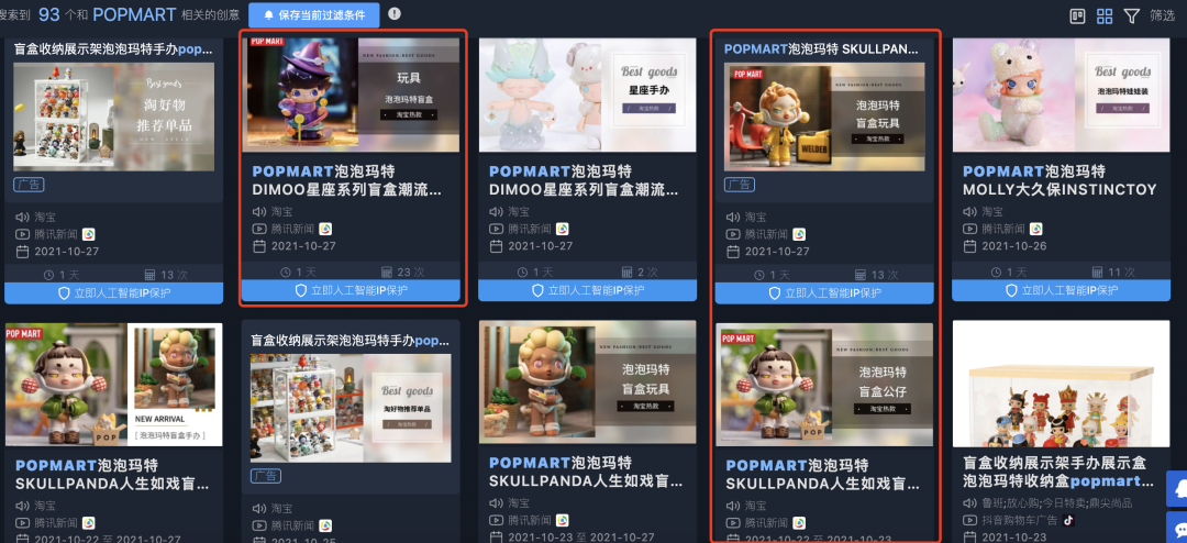 广告集中在淘宝平台。