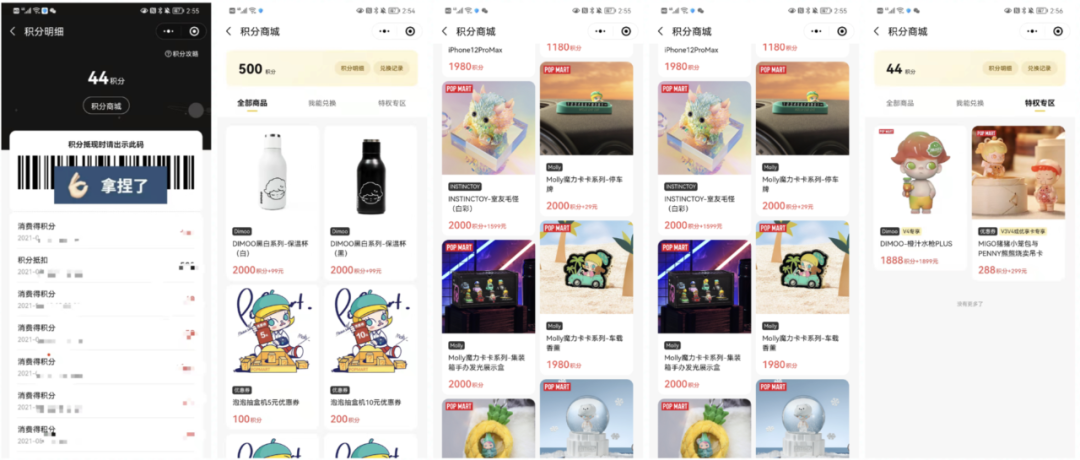 线上抽盒阵地,增加了线上买盲盒的体验,会员体系积分与泡泡玛特小程序互通,是泡泡玛特重要的收入来源之一。
