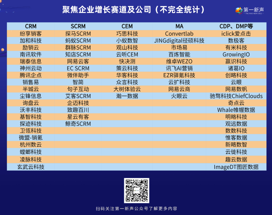 在工具或系统选择上,国内聚焦通企业增长的赛道有 CRMSCRMDMPCDPMA,到底该如何选择呢?